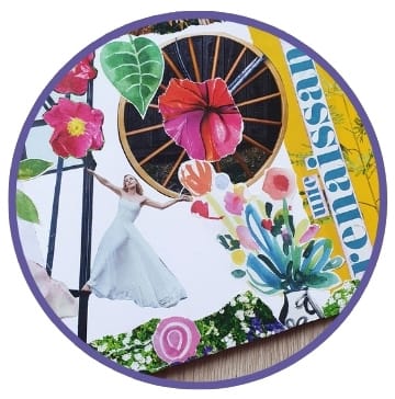 Je suis créatrice butineuse, artiste Mixed media (Techniques mixtes et peinture) et accompagnatrice en créativité “mieux-être”.