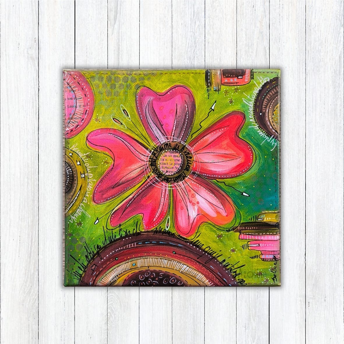 Œuvre originale format 20 x 20 cm. Peinture acrylique et techniques mixtes sur toile.